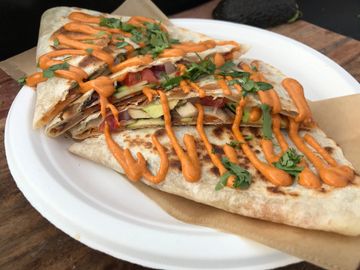 Cashew cheese, zucchini, tomato, onion, mushroom, avocado, cilantro with cashew aioli.